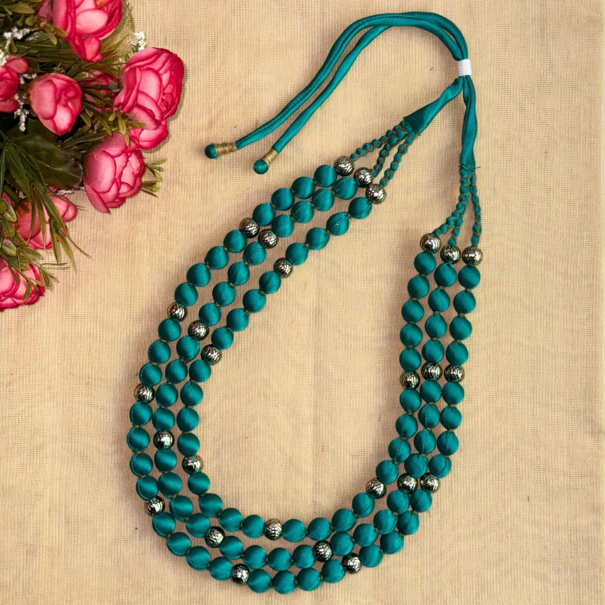 3 Layer Fabric Beaded Necklace in satin