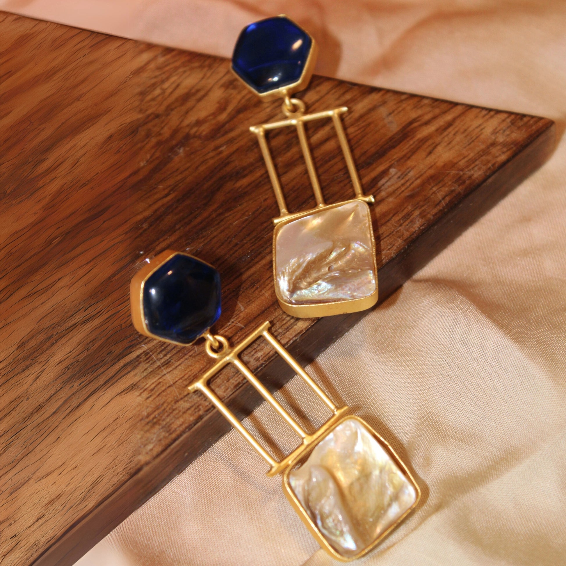 Silva Sutra Pearl & Hexagon Drops in blue