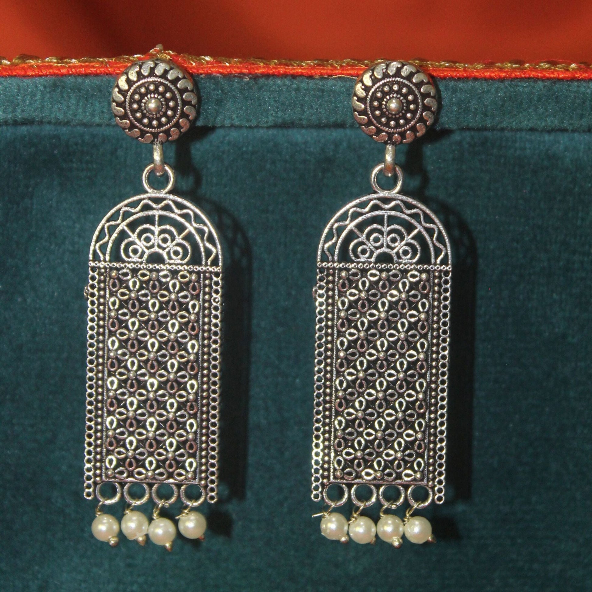 These Intricate Filigree Earrings are a stunning example of traditional craftsmanship. The intricate filigree work and delicate pearl accents create a timeless and elegant look. The push-back with stopper closure ensures a secure and comfortable fit. These earrings are perfect for adding a touch of sophistication to any outfit. Wear them with a simple dress and heels for a formal look, or with a casual outfit for a touch of bohemian flair.