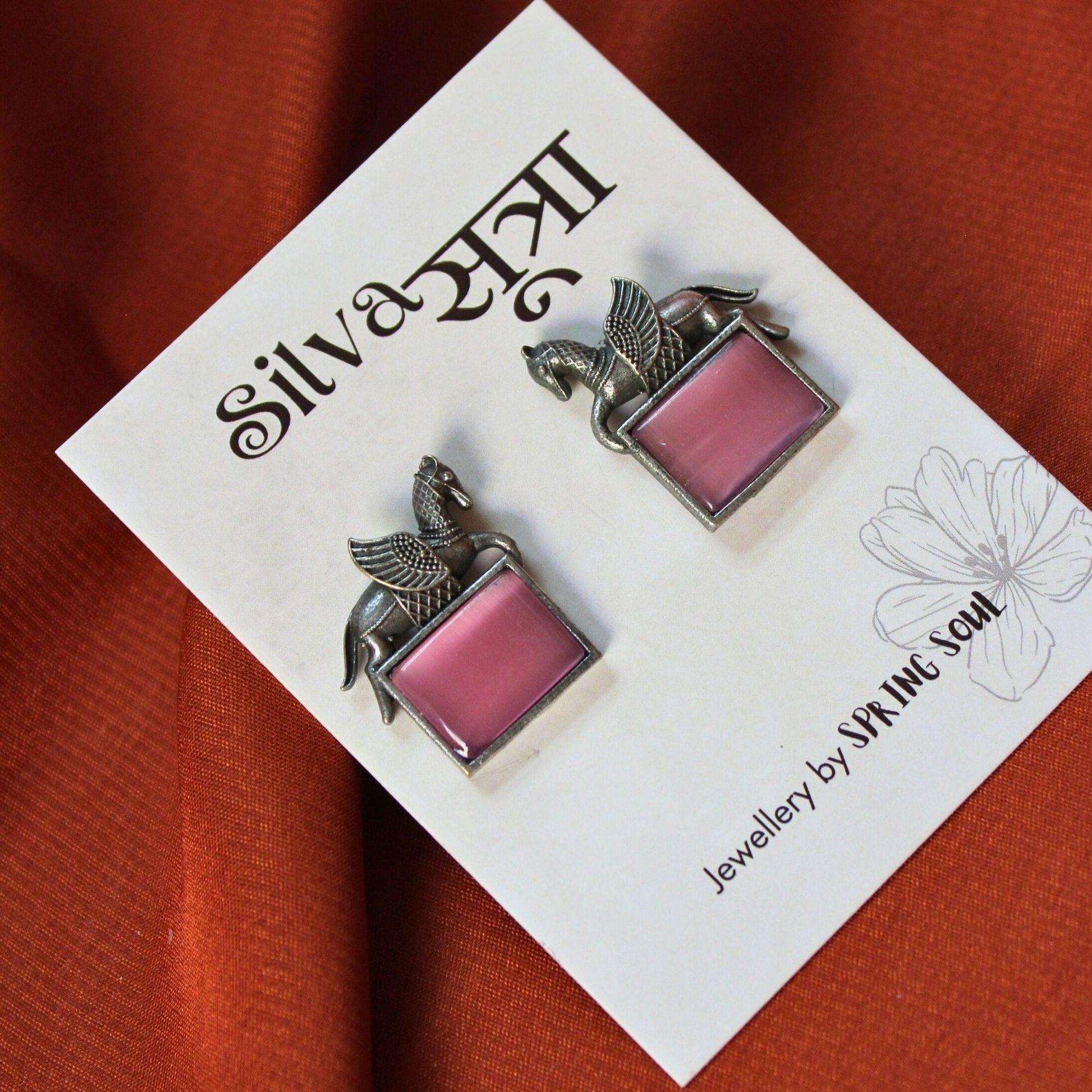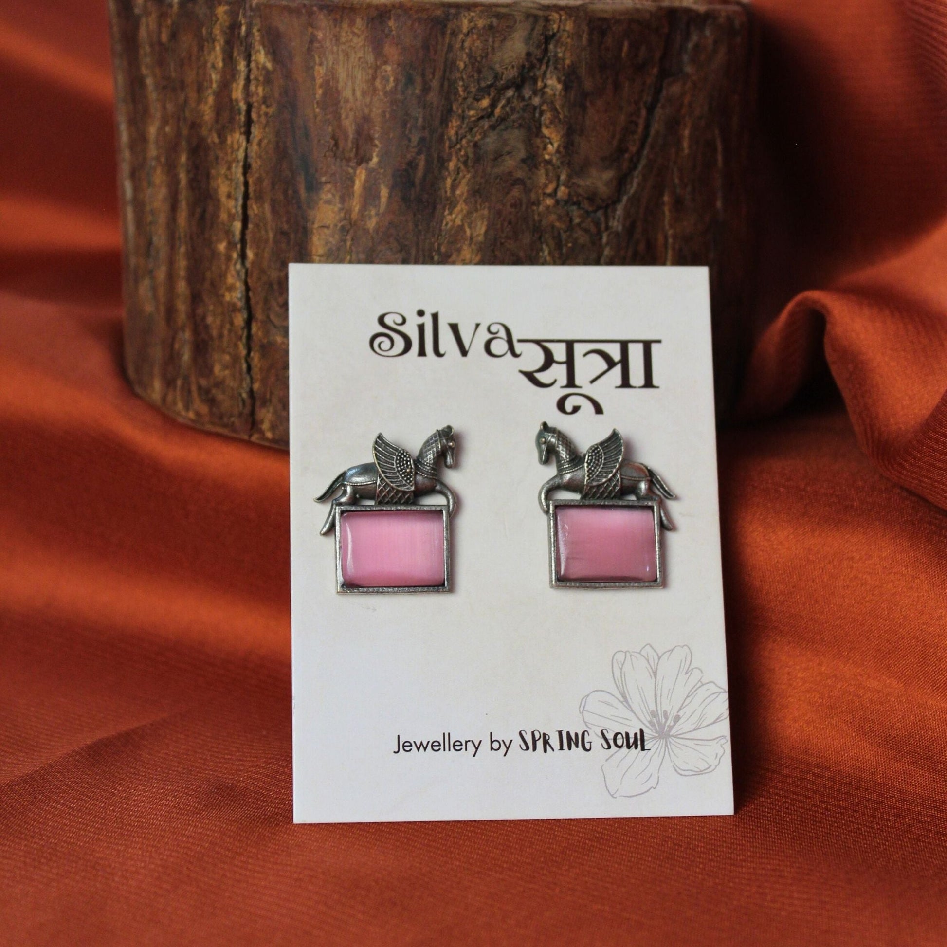 These Pink Unicorn Studs are a captivating blend of fantasy and elegance. The intricate design of the winged horse, adorned with a pink stone, creates a mesmerizing look. The push-back with stopper closure ensures a secure and comfortable fit. These earrings are perfect for adding a touch of magic to any outfit.