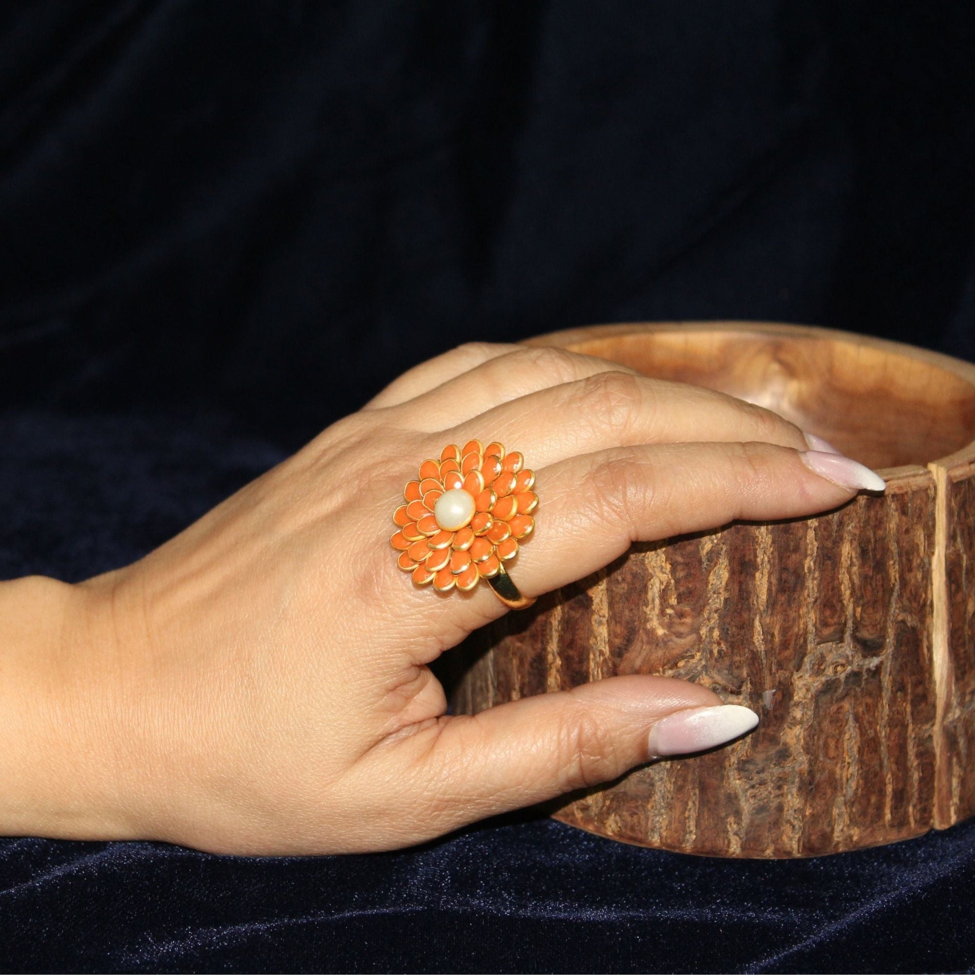 This Zinnia ring from Silva Sutra is a delicate and intricate piece with a touch of playful elegance. The vibrant colors make it perfect for any occasion. Style it casually with denim or dress it up with a flowy dress for a bohemian vibe.