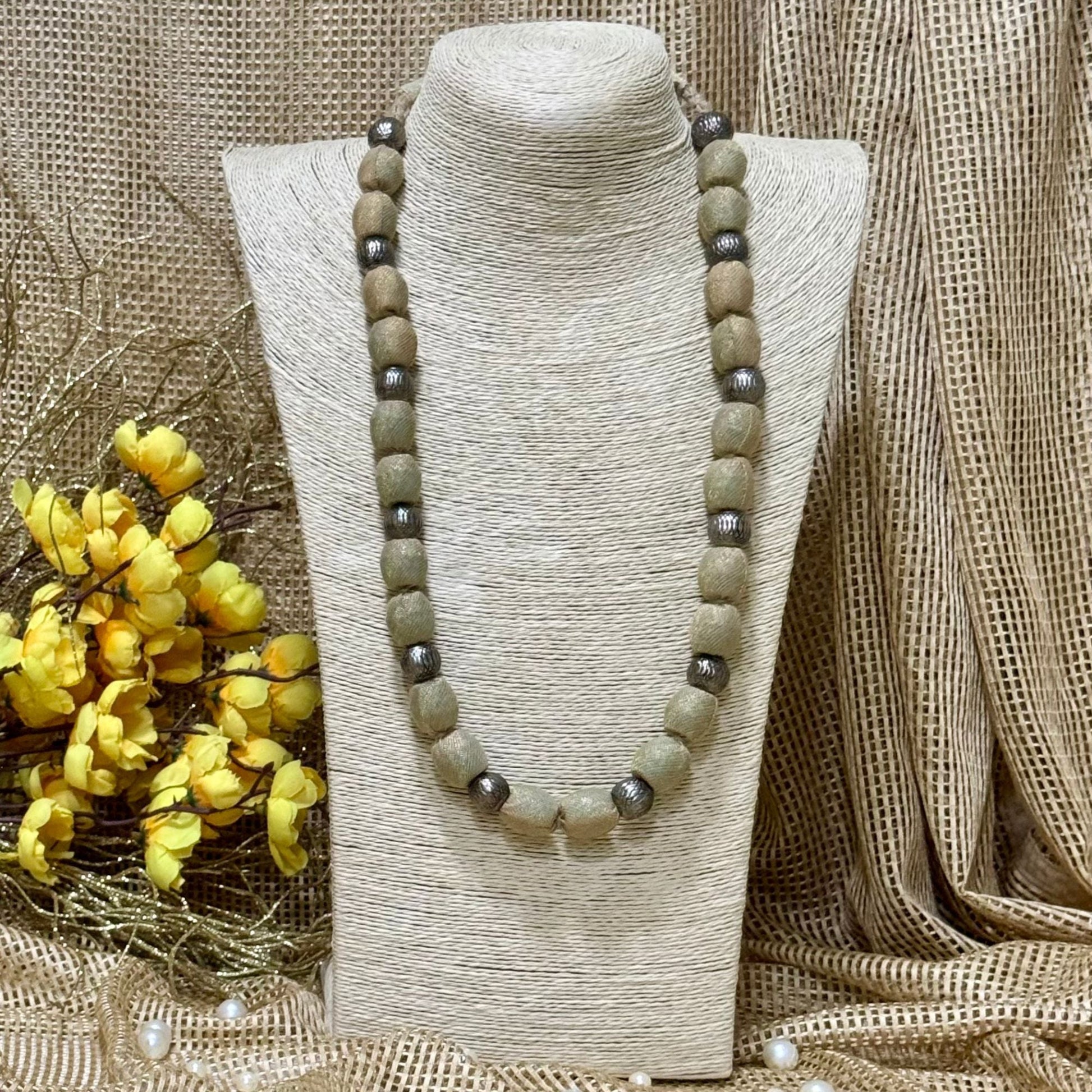 Single Layer Fabric Beaded Necklace in metallic tissue